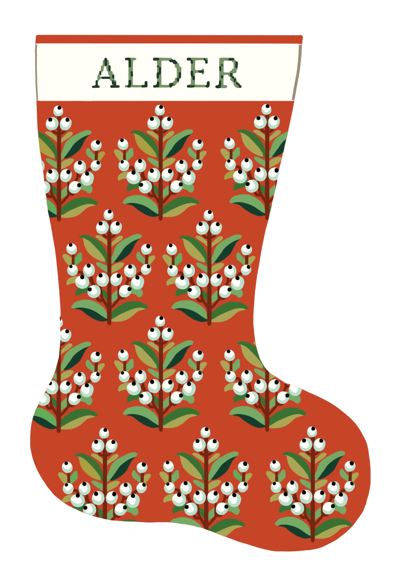 A handmade needlepoint Christmas stocking is the perfect holiday heirloom — something to be enjoyed year after year. This floral design features a pattern of white winterberries and green leaves — an elegant and classic addition to your mantle.