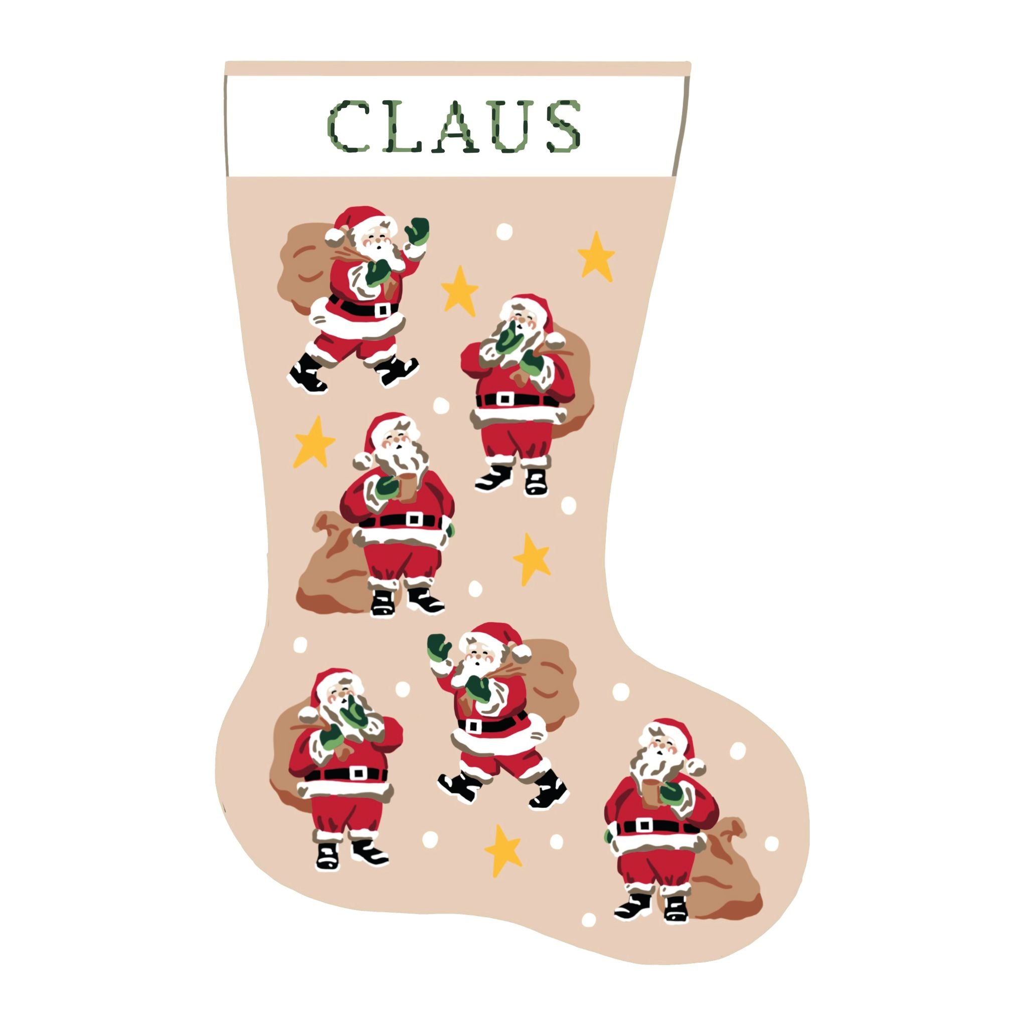 A handmade needlepoint Christmas stocking is the perfect holiday heirloom — something to be enjoyed year after year. Santa Claus prances across the canvas with mugs of cocoa and bags brimming with surprises. I love that this design is especially cheerful and great for kids.